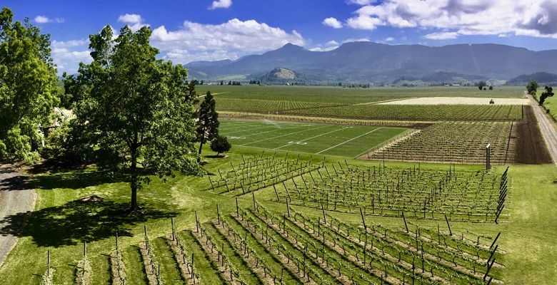 The Coburg-based Hayworth Vineyards is unique among all wineries this wine writer has ever encountered. It includes a regulation football field smack in the middle, complete with chalked lines. After Russ Hayworth tasted some Gamay Noir, he began an autodidact’s wine quest — another fascinating story. The wines are particularly distinctive, and for good reason.