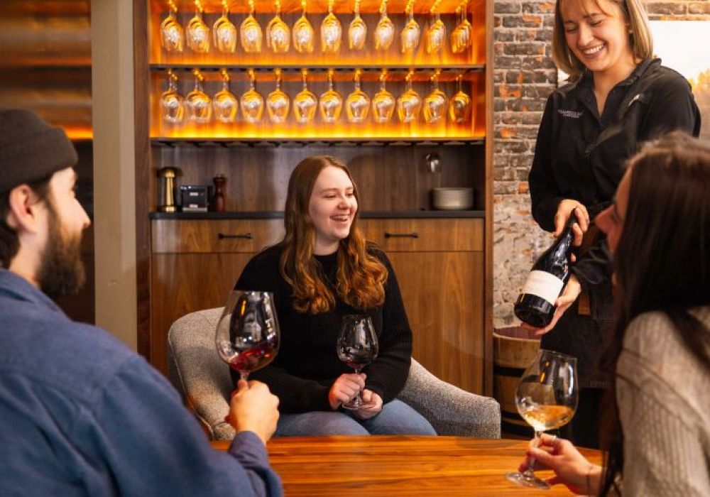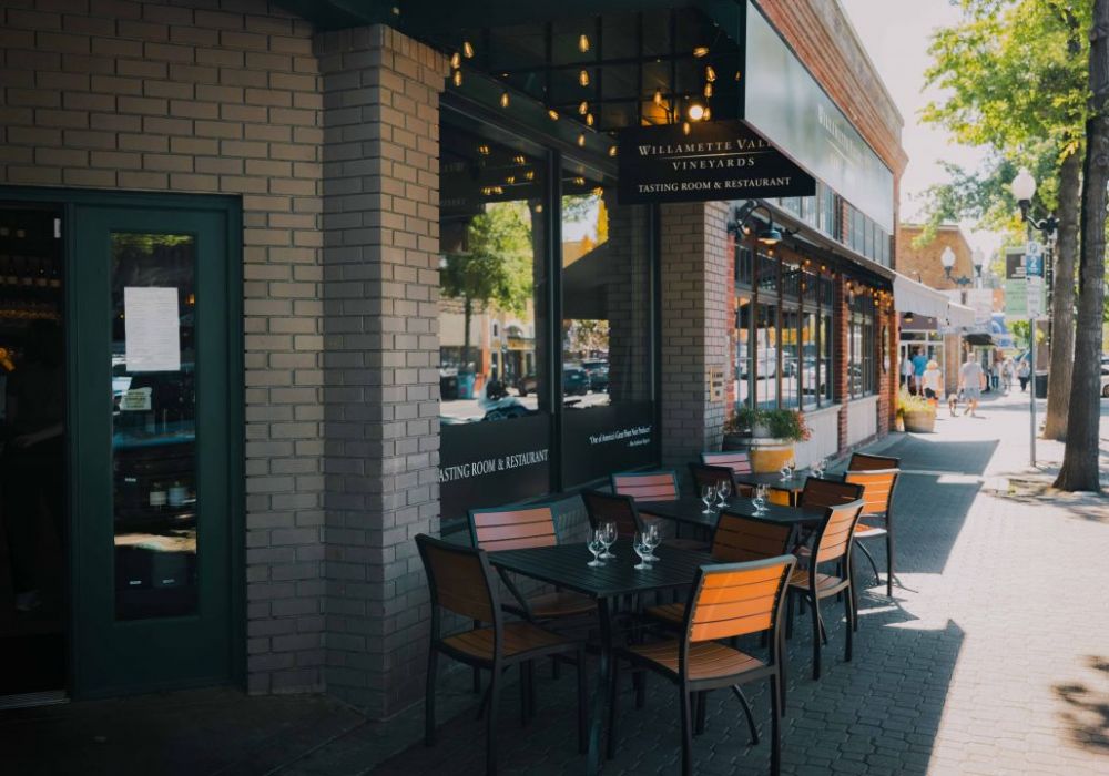 Willamette Valley Vineyards in downtown Bend offers seasonal wine flights and daily food pairings, featuring Pacific Northwest–inspired dishes made with fresh, local ingredients. Guests can enjoy a signature barrel-booth seating, a cozy fireplace, a bottle shop and a private dining space.