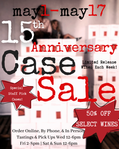Celebrate 15 turns around the sun with select wines at 50% off by the case, exclusively to our members from May 1st-17th. Sign up for our wine club to get access to sale prices immediately! Check out sale wines HERE or visit us in person to taste and build your summer stash of rose, white, sparkling, and red wines made by a family run business! Open Wednesday, Friday, Saturday & Sunday from 12-6pm. Questions? Email info@anichecellars.com