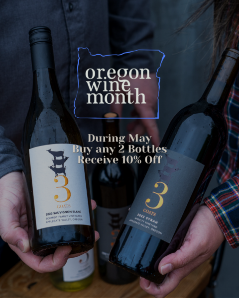 During the month of May, come by our tasting room and buy 2 bottles - you'll receive 10% off in celebration of Oregon Wine Month.