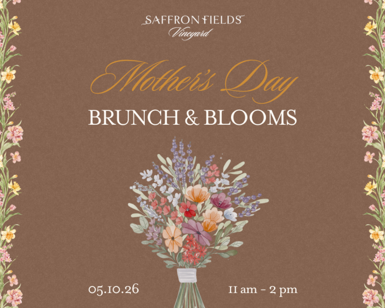 Celebrate Mom with a beautiful morning in the vineyard. Join us at Saffron Fields Vineyard for a special Mother’s Day Brunch & Bouquets experience.