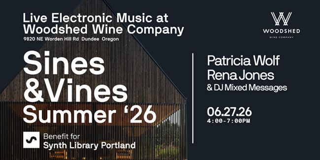 Sines and Vines is a summer concert series in the Dundee Hills. Join us for a night of original electronic music in the Woodshed tasting room, performed live by ambient artists Patricia Wolf and Rena Jones, with a DJ set by DJ Mixed Messages. Along with the live music, we'll have glass pours of our most popular Woodshed wines for sale along with N/A beverages and other fun treats.