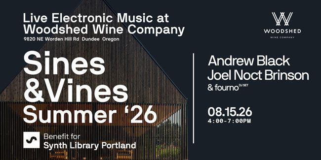 Sines and Vines is a summer concert series in the Dundee Hills. Join us for a night of original electronic music in the Woodshed tasting room, performed live by ambient techno artists Andrew Black and Joel Noct Brinson, with a DJ set by fourno.