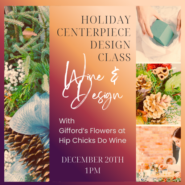 In this session of our Wine & Design series, our experienced instructor Laura Gifford Kerr, Gifford’s Flowers will guide you through the principles of design and teach you how to create a flower arrangement with holiday spirit. In a fun and casual environment, you’ll have the chance to work with a variety of evergreens, fresh flowers, decorative elements and learn how to arrange them in a visually appealing way. Whether you're a beginner or looking to refine your skills, this class is perfect for anyone interested in the art of floral design. Join us and unleash your creativity in the world of flowers this holiday season.
