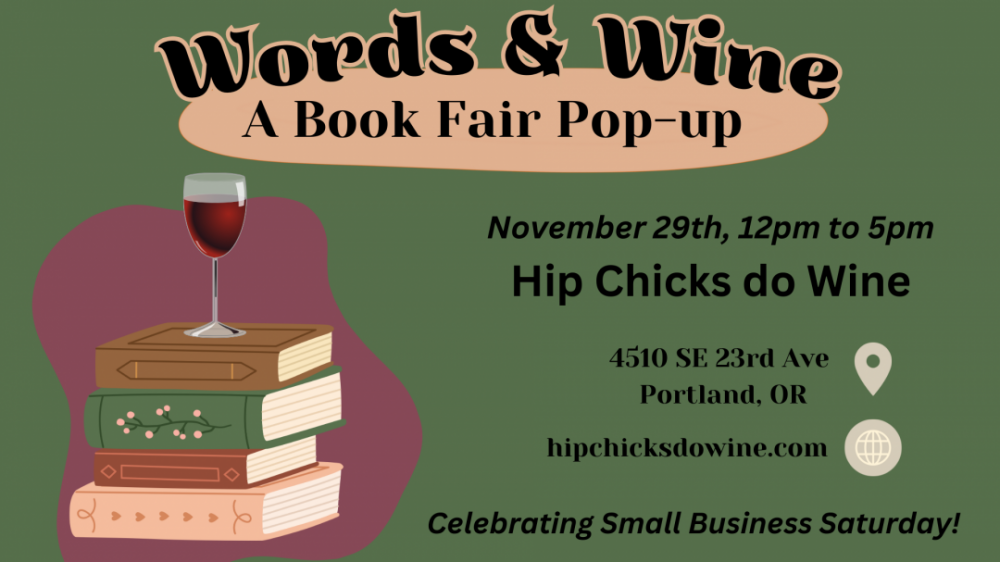 Spend an afternoon sipping, shopping, and celebrating stories at Words and Wine: A Book Fair Pop Up! We’re bringing together 16 local authors and one beloved local bookstore for a cozy literary marketplace right inside Portland’s oldest urban winery.